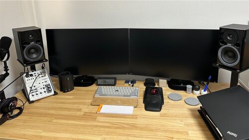 記事を書いた。 developer.hatenastaff.com ので、こちらでは自宅のデスクトップ(物理)の話でも。突撃要素は無。 こういう環境で仕事しています 至って普通のディスプレイ2枚構成。キーボードはHHKB HYBRID Type-S、トラックボールはKensington ExpertMouse…
